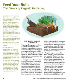 Expanded with seven more pages of gardening tips and guides, new illustrations and updated photography, the Down To Earth™ Garden Guide will get you ready for the growing season. With information on growing perennial favorites such as tomatoes, strawberries, potatoes and healthy lawns, the guide also features information on recognizing plants’ nutritional problems, understanding mycorrhizae and tending to the microbial life in the soil. The guide includes the handy fertilizer chart to help you understand which of our products is best suited for your garden’s needs.