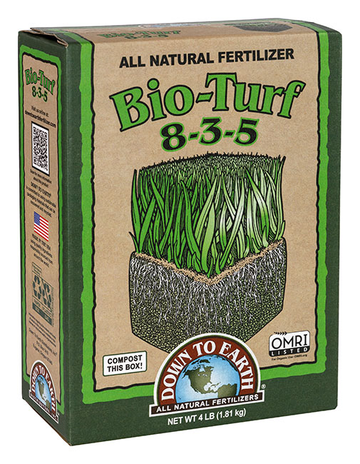Down To Earth’s Bio-Turf 8-3-5 is an entirely natural granular lawn fertilizer designed to encourage deep root development to help reduce watering requirements. DTE Bio-Turf’s nitrogen-rich formula boosts early season growth while its extra Potassium reduces seasonal stress due to temperature change and drought. DTE Bio-Turf is also ideal for heavy feeding garden vegetables like corn, tomatoes and leafy greens.