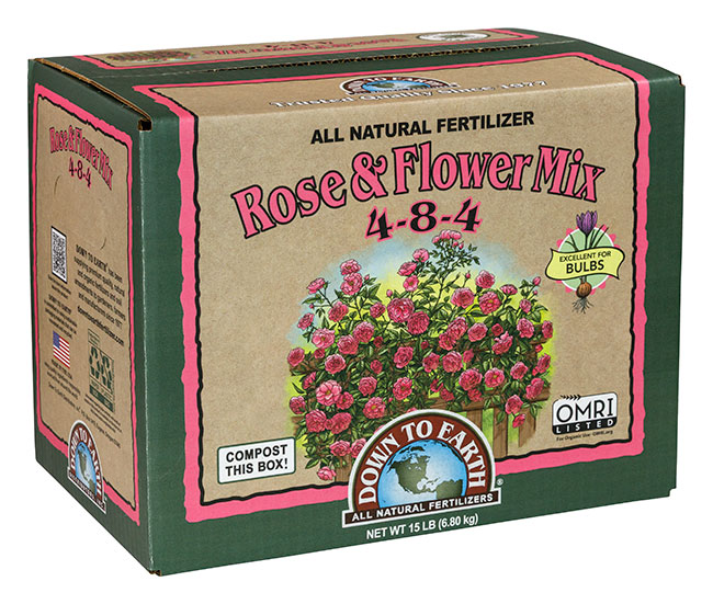 Down To Earth’s Rose & Flower Mix supplies your favorite roses, bulbs, annuals and perennials with the nutrients they need for vigorous growth and sensational flowers. Tantalizing tea roses, magnificent marigolds, petite petunias, and tumescent tulips will all benefit from a good dose of Rose & Flower Mix. Onions and garlic love it too! Apply Down To Earth® Rose & Flower Mix at planting and throughout the season for a vibrant and colorful garden.