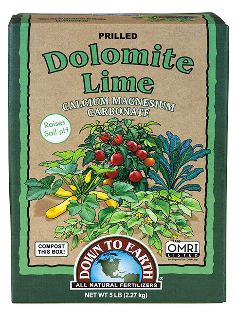 Down To Earth’s Dolomite Lime sweetens your soil (raises the pH) to improve plant growth and maximize fertilizer performance. Natural dolomite is ground into an ultra-fine powder then prilled into uniform granules for easy spreading. This allows for a rapid reaction time once applied to garden soils and lawns. Dolomite lime supplies calcium and magnesium, essential nutrients that are required for proper plant growth and development.
